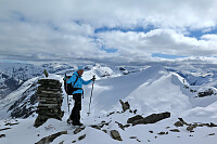 Bilder kommer ! Idag var det Geir Arne som kunne velge tur og i et samstemt fellesskap landet vi på Kvitegga som er kommunetopp i Ørsta og faktisk den toppen hvor jeg i påska 2005 besøkte sammen med Ove og flere andre og som var begynnelsen på forholdet vårt , tenk det :-) Vi hadde hatt en lng ig koselig kveld i går med god mat og drikke og hadde derfor ikke noen alpin start i dag. Vi var pakket og klar til å gå fra hovedveien i Nibbedalen rundt kl 10.30. Det var skibæring etter rødmerket og tydelig sti oppover Tryggestadbakkene som fører opp til Snødalen. Stien var grei å følge, men gikk tidvis gjennom ganske så tett småbjørkeskog så med ski og skisko på sekken hadde det vært greit om den hadde vært bedre ryddet. Det gikk likevel ganske så radig oppover til Snødalen hvor >>>