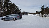 Vi kjørte til Espedalen og parkerte på den store parkeringsplassen like før Dalseter Høyfjellshotell.