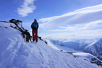 Vi gikk opp fra Skinnset, først opp på Storhornet tok en lang pause her før vi fortsatte videre til Elghøa. Fikk fin nedkjøring ned til Skinnset på nysnøen som hadde kommet det siste døgnet.