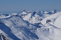 Når vi kom opp på breen lettet været og solen dukket frem og fra her var det fin tørrsnø. Så ikke ut til å være så langt å gå opp til Snønipa når jeg sto nede på breen men lengden lyver litt for det ble en dryg tur oppover bakkene før jeg endelig stod på toppen, >>>