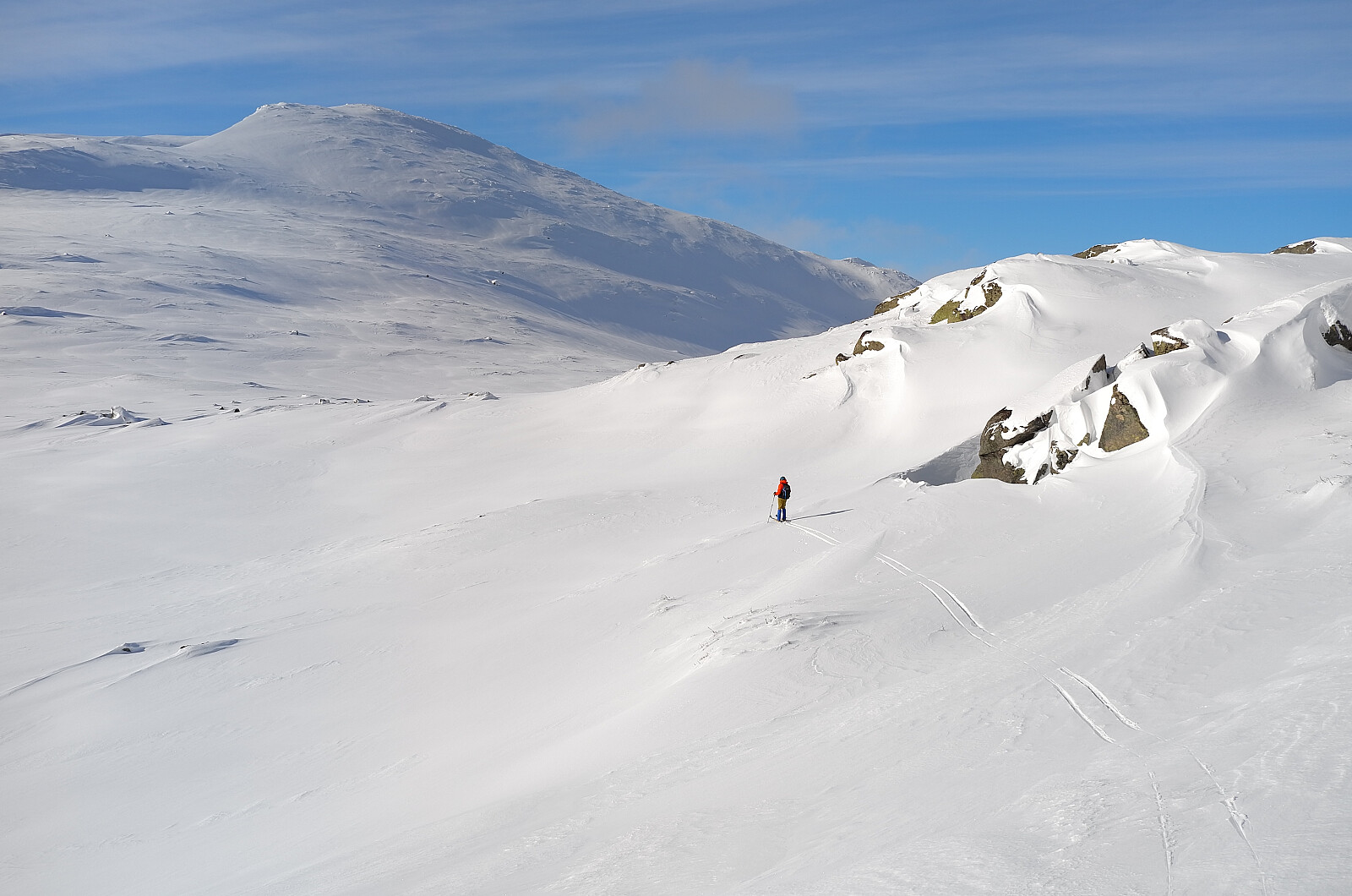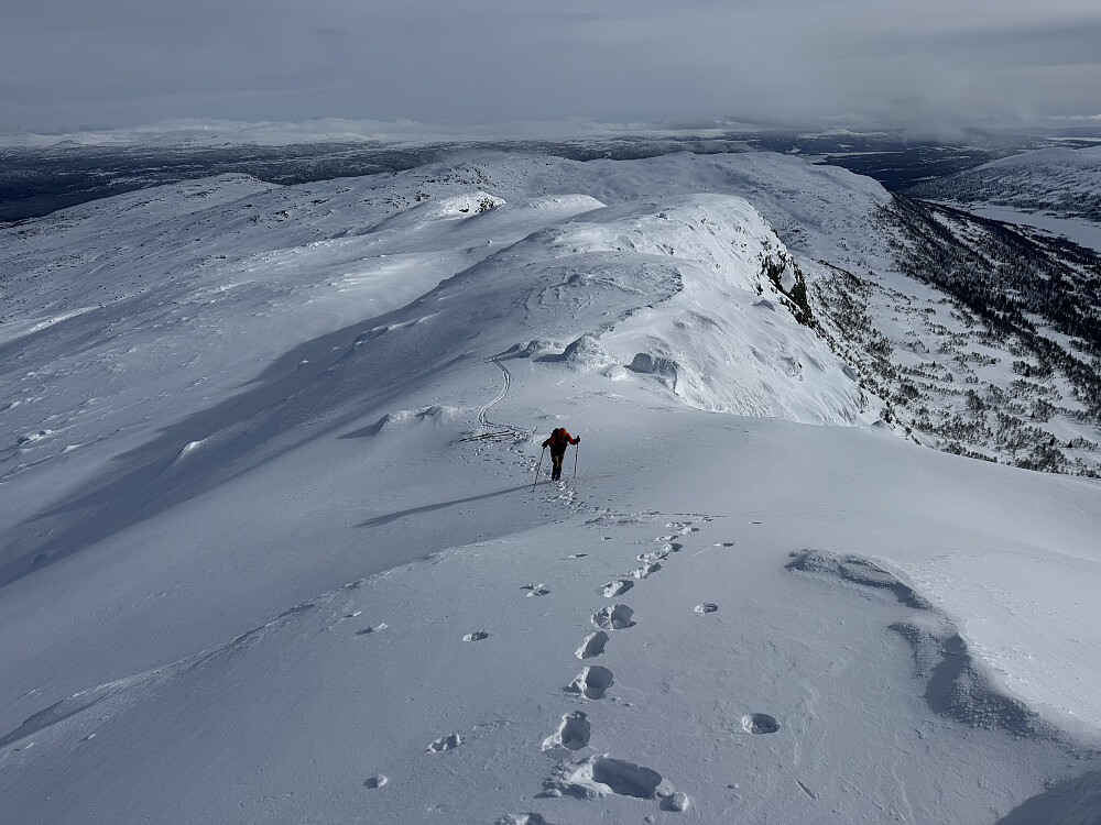 Fin tur og godt skiføre. Noen cm nysnø siste natt gjorde forholdene helt greie. Nysnø trengtes for under var det temmelig hardt i høyden. Guspiggen er et spenstig fjell med god utsikt. Vi observerte flere scootere parkert nede ved Guslihytta. Sommertur til Fossdalsfjellet kan bli bra. Ypperlig nedkjøring til Holdensjøen.