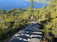 Day Out i Narvik sørget for en sprek EL-sykkel til dagens klatre-etappe. Etter tunnelen ble det dårligere vei-standard til demningen. Flere rypejegere hadde fått tillatelse til å kjøre opp, mens andre syklet EL med børsa på ryggen. I sekken min var det kun gå-staver. Sett nedenfra fikk jeg øye på en perfekt skrå-linje opp fjellsiden (bilde nr 4). Bratt nederst i en blanding av gress, lyng og noe stein. Det var best å gå inn mot berget. Oppe på ryggen var det stort sett steinur helt opp til traversen. Denne var ikke spesielt luftig da det var 10 meter på det smaleste. Sildviktinden (1360) er en flott utsiktstopp. På returen fikk jeg øye på malmtransporten (68 vogner) nede ved Rombak stasjon. // Sykkel = 20 km (45 min opp - 30 min ned) - Fottur >>>