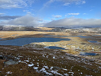Kjørte Vinstradalsveien (avgift) forbi Ryphusan til første sving. En sti fortsetter ned til bekken. La ruta mellom Finnsjøen og Veslfinnsjøen. Videre opp til Finnshøa (1438). Trimpost ved varden. Ok vær og bra utsikt.