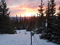 Etter flere dager med skitur på Vestfjellet, ble det i dag tur til Skei. Sen start, som resulterte i en fantastisk solnedgang. Parkerte i fjellandsbyen, etter å ha vært innom sportsbutikken og kjøpt skismurning, da min lå igjen hjemme. Helt fullt med biler på den store parkeringsplassen ved butikkene. Gikk først til Bjørga. Flere på topptur der i dag, men alle til fots, da skiløypa opp til toppen var hard som is, men det gikk greit med ski og. Deretter løypa over Kyrakampen, med tung brøyting opp bratta til Kyrakampen topp. Utrolig flott solnedgang her. Til slutt en liten runde nord om Petterheisbua. Rett og slett en flott skitur i fantastisk desemberlys.