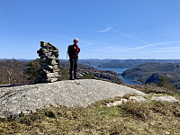 Tur fra Sandeid på god gårdsvei. God sti den siste biten opp til toppen. Flott utsikt mot Ølen, Sandeid og sørover Sandeidfjorden.