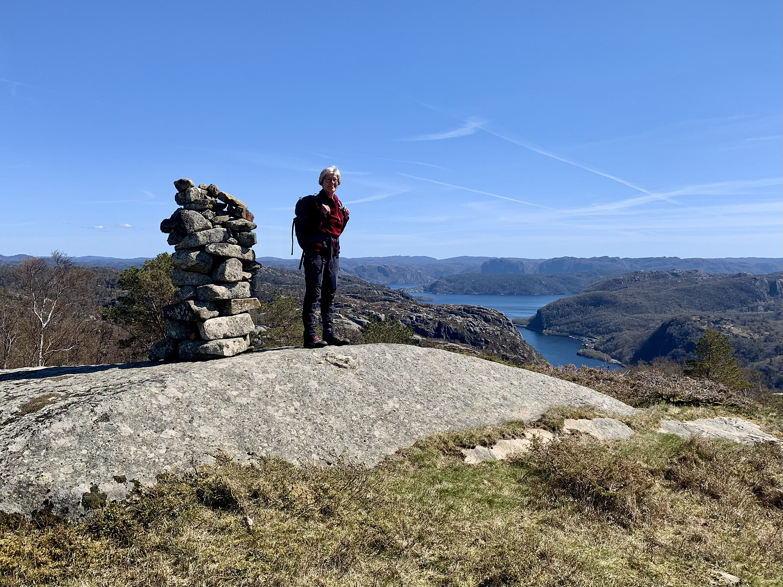 Tur på merket sti fra Itland. Fantastisk utsikt mot Hidra og Hidrasund. Vi gikk tilbake til Litle Håland og fortsatte derfra mot Mønstremyrvarden/Vardefjell.