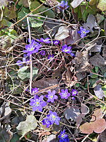 Tur hjemmefra, overskyet, glimt av sol. Bart overalt nå. Mye blåveis ved råket på øversida av Ersgård.