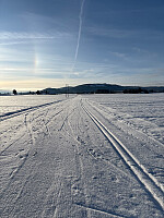 Minus 20 på morgenen, minus 12 og sol da jeg startet. Nykjørt hjemmefra, og utrolig god gli. Herlig. Men bare kjørt til Kjellmyra, så litt tråere føre derfra. Trafikk i løypa, men det var av rådyr og ikke skiløpere. Litt mer snø nå, så blir det perfekt.