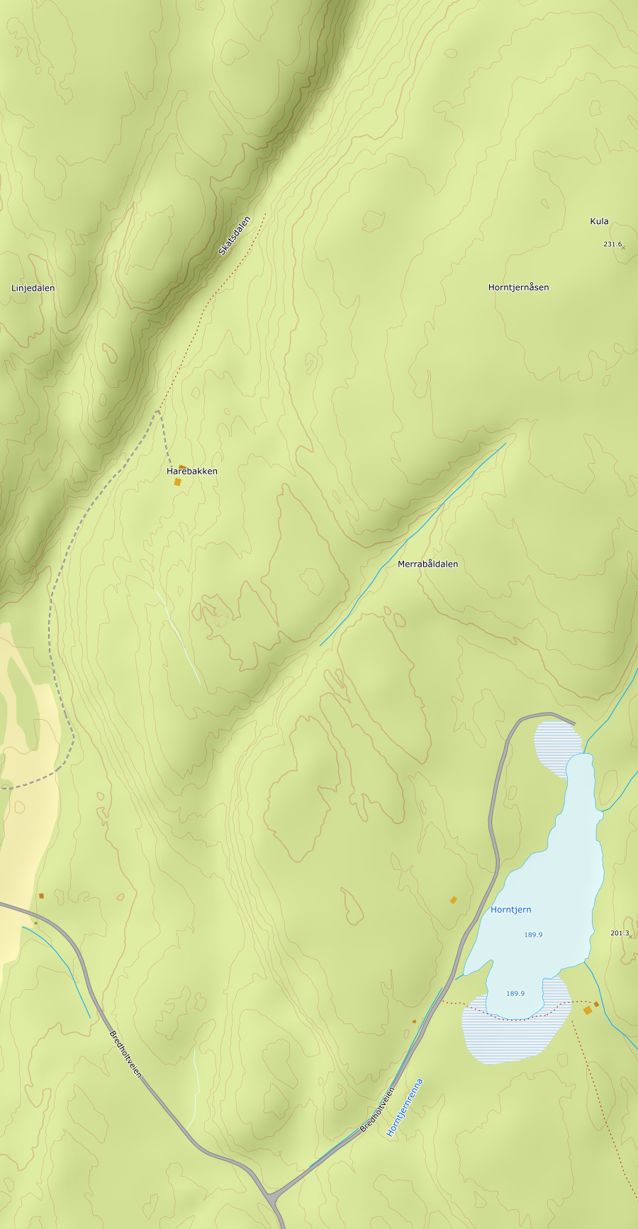 Jeg kom kjørende nordfra forbi Bredholt og parkerte i krysset sør for Horntjernet. Herfra fulgte jeg god sti forbi tjernet og helt opp til toppen av Horntjernåsen. Det var deilig å gå i litt barmarksterreng igjen:) Toppen var fint med åpen skog, uten den store utsikten.