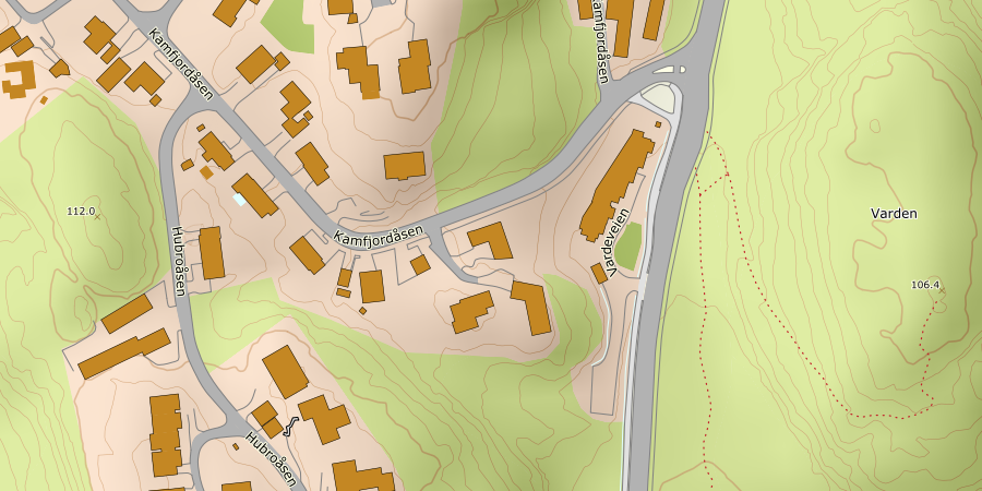 Jeg parkerte på Vardeveien parkering nede ved hovedveien, da det er vanskelig å finne lovlig parkering oppe i byggefeltet. Jeg skulle jo uansett ut å gå litt:) Turen gikk først opp på god sti til Varden som bød på god utsikt i flere retninger fra topp-platået. Ned igjen samme vei som jeg kom opp, og deretter langs veien opp til garasjen som ligger like nedenfor toppen av Kamfjordåsen. På vei opp valgte jeg å gå under kampesteinen og i en liten bue opp til toppen. Her var det et trigpunkt og spredt utsikt. Ned igjen gikk jeg direkte til utgangspunktet ved garasjen, det tok omtrent 30 sekunder:) Definitivt ingen langtur dette her!