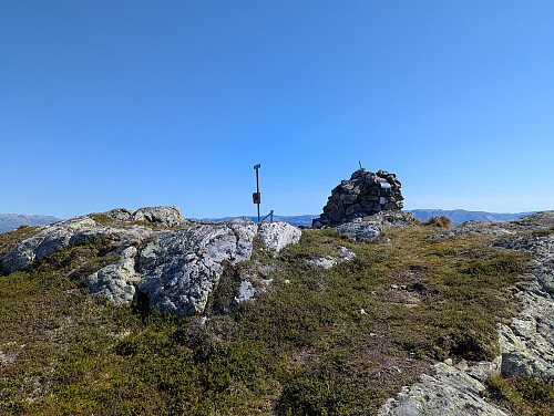 På toppen av Høgahorgi/Nesheimshorgi (en boks for hver :). Utsikt mot øst, Hardangerjøkulen synes
