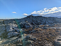 Bestemte meg for å ta en ettermiddagstur til en av de nærmere toppene på Voss-lista, Horn. Kjørte til Bulken, og videre opp Vætesvegen til parkering ved Tverrlii. Greit å finne (svært gjørmete) sti herfra opp til stølen Listred. Gikk litt nord for stølen, før jeg krysset bekken og satte kursen nordvest mot Horn utenfor sti. Greit å følge terrenget videre, men tungt å gå i fuktig terreng som går relativt bratt oppover. Toppunktet bare markert med noen steiner, varden lengre vest mer iøyenfallende. Været skiftet fra skyet til regn idet jeg nådde toppen, men tok et besøk innom varden for noen bilder, før jeg gikk tilbake over toppen og samme vei ned. En ok tur men neppe en jeg avlegger flere besøk.