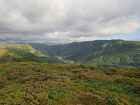 Jeg kjørte til Trengereid og videre de bratte bakkene opp til Skulstad for en tur til Hananipa. Imidlertid var det fullt på parkeringsplassen, så jeg kjørte litt nedover og fant en plass ved siden av vegen. Her er det såvidt plass til to biler. Så det ble noen ekstra høydemeter. Jeg fulgte veien opp til demningen ved Skulstadvatnet. Herfra er det god sti videre til topps. Det var varmt og vindstille, så det ble ganske hett oppover bakkene. Men du verden for en fin topp. Her var det god utsikt i alle retninger. Det ligger fortsatt en del snø på de høyeste toppene. Etter en liten matbit bar det ned igjen. Det var en del klegg på vei oppover, men ellers en herlig tur.