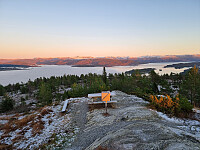 Jeg parkerte i en parkeringslomme ved siden av Mongstadvegen. Derfra fulgte jeg vei og til slutt sti opp til toppen. Det var begrenset utsikt på grunn av trær.