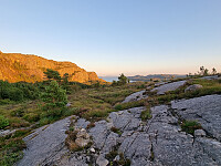 Jeg gikk deretter litt tilbake (sørover) samme vei til et stikryss. Her tok jeg av vestover mot Vorlandstua . Siden stien gikk over ei stor myr, tok jeg av oppover lia, men litt for tidlig. Det medførte at jeg kom ut i ulendt terreng, men jeg kom snart tilbake på stien. Deretter greit til toppen av Vorlandstua. Sørøstover mot Randifjellet var stien >>>