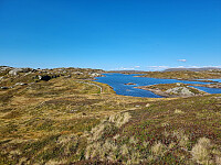 Jeg kjørte til Trengereid og videre de bratte bakkene opp til Skulstad for en tur til Hananipa. Imidlertid var det fullt på parkeringsplassen, så jeg kjørte litt nedover og fant en plass ved siden av vegen. Her er det såvidt plass til to biler. Så det ble noen ekstra høydemeter. Jeg fulgte veien opp til demningen ved Skulstadvatnet. Herfra er det god sti videre til topps. Det var varmt og vindstille, så det ble ganske hett oppover bakkene. Men du verden for en fin topp. Her var det god utsikt i alle retninger. Det ligger fortsatt en del snø på de høyeste toppene. Etter en liten matbit bar det ned igjen. Det var en del klegg på vei oppover, men ellers en herlig tur.