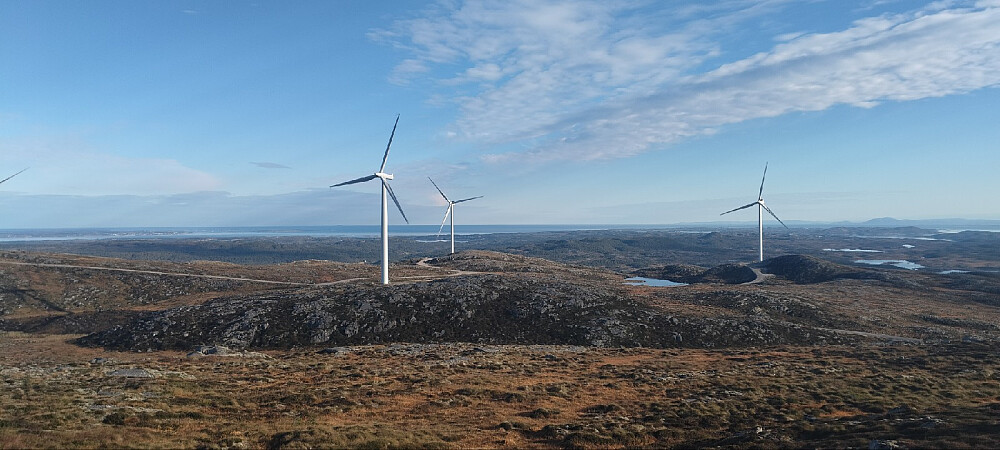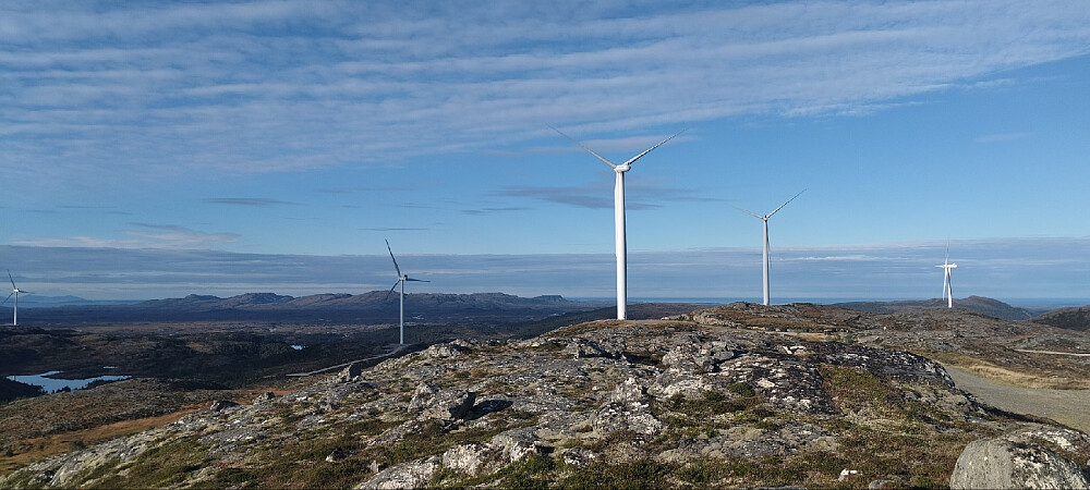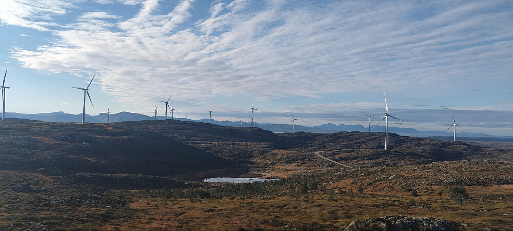 Vegen opp til vindparken er stengt med bom nede ved hovedveien