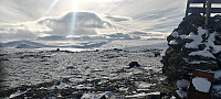Vegen opp til vindparken er stengt med bom nede ved hovedveien