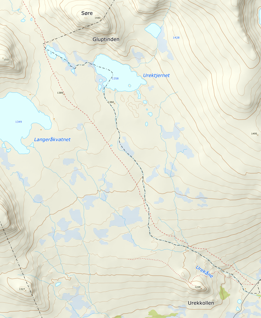 Første målet var Søre Gluptind, hvor jeg gikk opp på høyre siden. Alternativet hadde vært å følge stien som passerte midt mellom Gluptindene, men det gikk også fint å gå opp på høyre side.