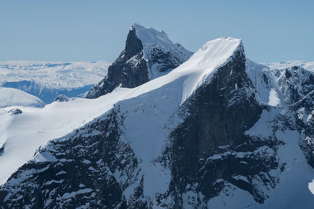 A ski ascent from Turtagrø. 8 hours. On the photo you see Store Austanbottstind (2203m) and Store Ringstind (2124m). In fresh snow there is a spectacular 1000m descent from Store Ringstind: