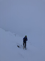 Litlevasstinden med Elias Birkeland. Fikk ikke noe særlig med utsikt fra toppen denne dagen for det la seg nedpå ei sky med ei lita byge inni. Måtte ta det pent ned igjen på grunn av svært flatt lys. Føret varierte mellom hardt, knallhardt og skare, men det var en fin tur for det.