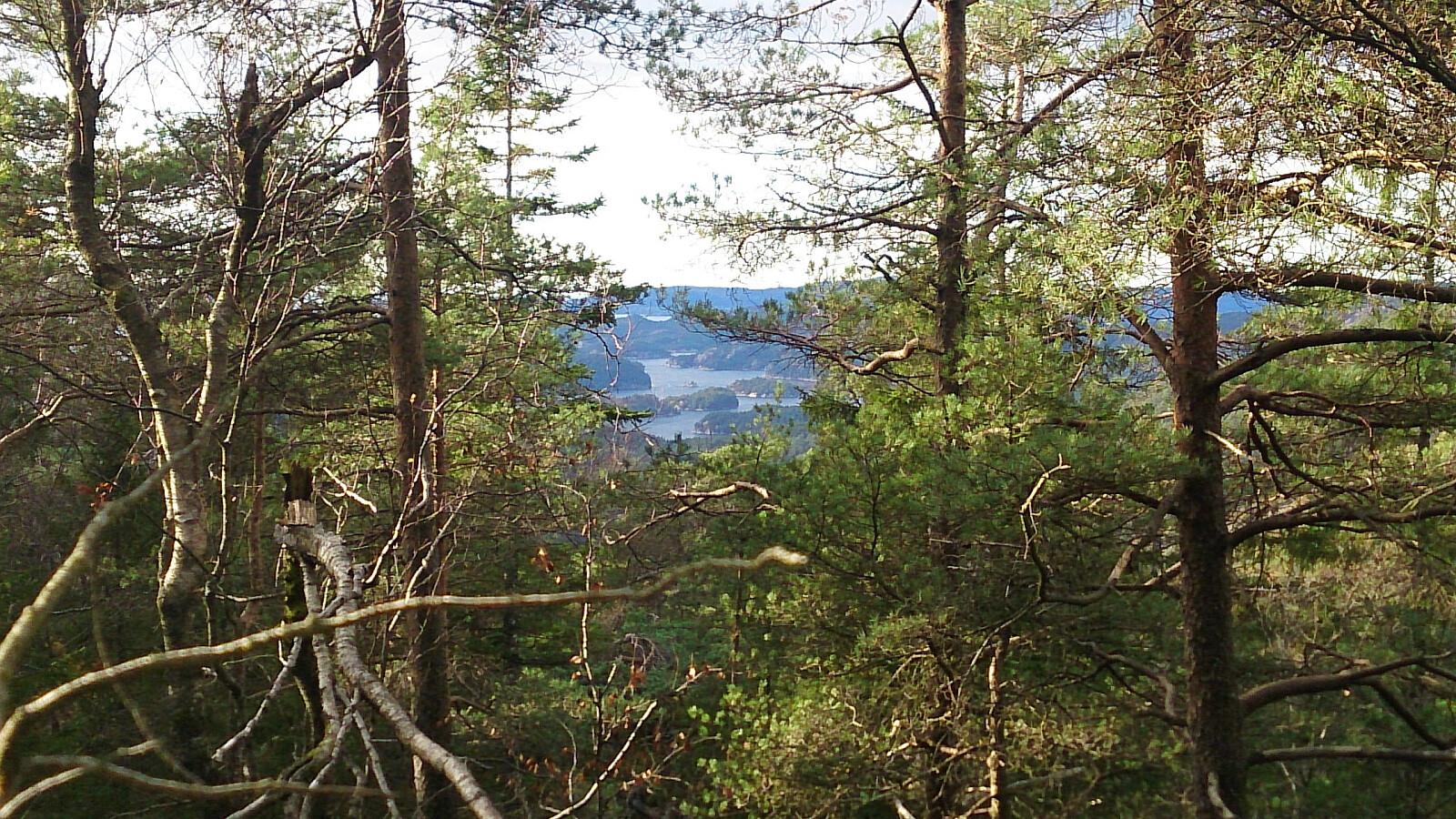 The trail was however quickly replaced by numerous deer tracks, which I partially followed on my way to the summit. The terrain was full of trees and a bit disorienting, hence the GPS was good to have when trying to locate the highest point. The summit provided limited views, but both Lyshornet and Lysefjorden could be spotted in-between the trees.