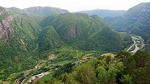 The unmarked trailhead for Beitelen was therefore located and I started up the surprisingly steep trail. There were even a couple of ropes that could be used to ease the ascent, but these were not really needed. After finally reaching the ridge, the progress was easy, and I shortly arrived a the summit. Due to lots of trees the views were perhaps more limited than expected, but there were still nice views to be had down to Dale and Dalegarden.