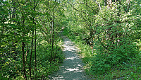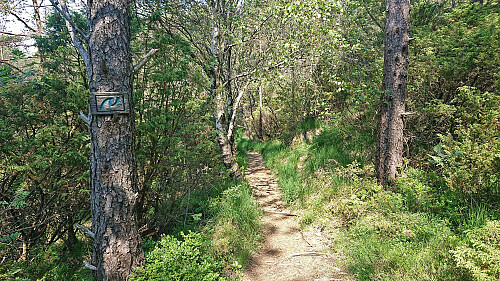 With a weather forecast of possible afternoon rain showers (including lightning), I changed my more ambitious plans and instead hopped on a bus to Fjell. Here I got off at Fjell kyrkje and followed the so-called church road north. The start of this road, or more correctly trail, was marked from the church, however the actual trailhead can be easily missed.