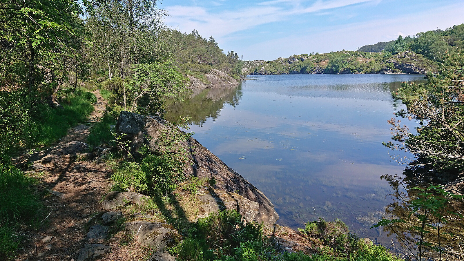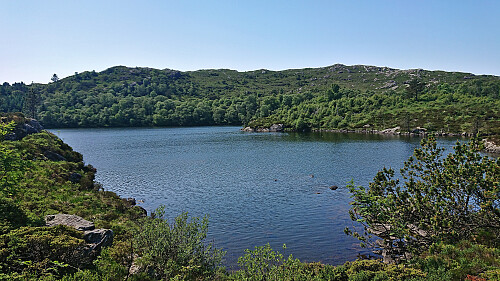 The trail markers for some reason also tried to send me southwest early on, but I ignored them and continued north, passing by several small lakes. I also ignored the first sign for Kolltveit as I had plans to first include a visit of Øst for Kyrkjenibben (previously just called Kyrkjenibben, but this is clearly a point further west and not the summit itself).