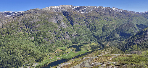 A return to Modalen to ascend Gråsida. We found parking next to the bridge separating Midvatnet and Åbotnsvatnet, and from there walked the short distance along the road to the marked trailhead for Gråsida and Vardadalsbu. The start of the trail itself was however a bit unclear but we soon found the red T's and from there on it was relatively straightforward to follow the marked trail almost all the way to the summit.