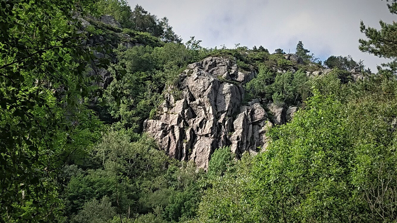 With a weather forecast of late afternoon rain showers, I postponed my initial hiking plans and rather went for a cycling trip to Krokeide with the goal of visiting two more peaks on the Alle topper i Bergen list, namely Nonkletten and Moldstigahaugen . Thanks to the earlier trip reports, I could easily locate the unmarked trailhead south of Nonkletten, and after leaving my bike behind I followed the marked trail all the way to the summit. Limited views from the summit itself, but the views during the ascent (and later descent) were quite good.