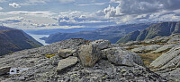 The summit was reached without any issues and provided great panoramic views. Before descending along the same route we had a short break celebrating that I had now completed both Vaksdal ≥ 100m pf. and Nordhordland PF >= 100m !