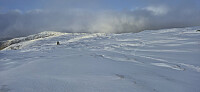 Saturday hike in fresh snow exploring a new route to Hauggjelsvarden via Erdalsvarden . The trailhead from Helldalslia was marked however the trail itself was not always easy to follow, largely due to the snow but also due to lots of fallen trees partially blocking the way. How closely I later followed the trail towards Erdalsvarden I'm not sure but I think I did pretty good. From Erdalsvarden I headed off-trail towards Valhal and then continued to Byfjellenes høyeste punkt and Hauggjelsvarden, before circling back to Turnerhytten and descending via a (for me) new route passing by Gimle . During the descent, I made a quick visit of Krossen where I was able to follow a trail almost to the highest point that also continued to the gravel road to the south. The hike was finally concluded with a light jog down the gravel road in order to return to Sædalen in time for the bus back >>>