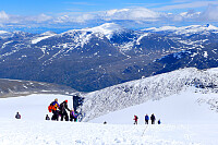 Med den gode værmeldinga gikk jeg og søsteren på tur til Norges tak. Det var uansett i nærheten av Bøverdalen vandrerhjem hvor vi overnattet og jeg var rimelig sikker på at søsteren ville bli megetfornøyd med utsikten fra toppen. Været viste seg å bli enda bedre enn forventningene og jeg måtte kjøpe solkrem på Coopen i siste liten da jeg ikke hadde husket å ta den med fra Tromsø. Solbriller hadde vi begge glemt også. Sånn går det med forberedelser til en sommerferie i Norge ;) Vi var fremme på Spiterstulen ca. kl.10 og etter å ha kjøpt parkeringsbevis og gjort oss klar for tur, begynte vi å følge den DNT-merket stien oppover. Utsikten sørover Visdalen ble veldig fin etter hvert og det var ikke lenge før vi traff snøen. Søsteren min er ikke særlig vant til å gå >>>