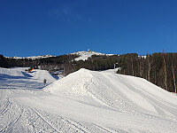 Minus 14 på parkeringen, men varmere oppe på "Haugan ". Flott blå-extra føre.