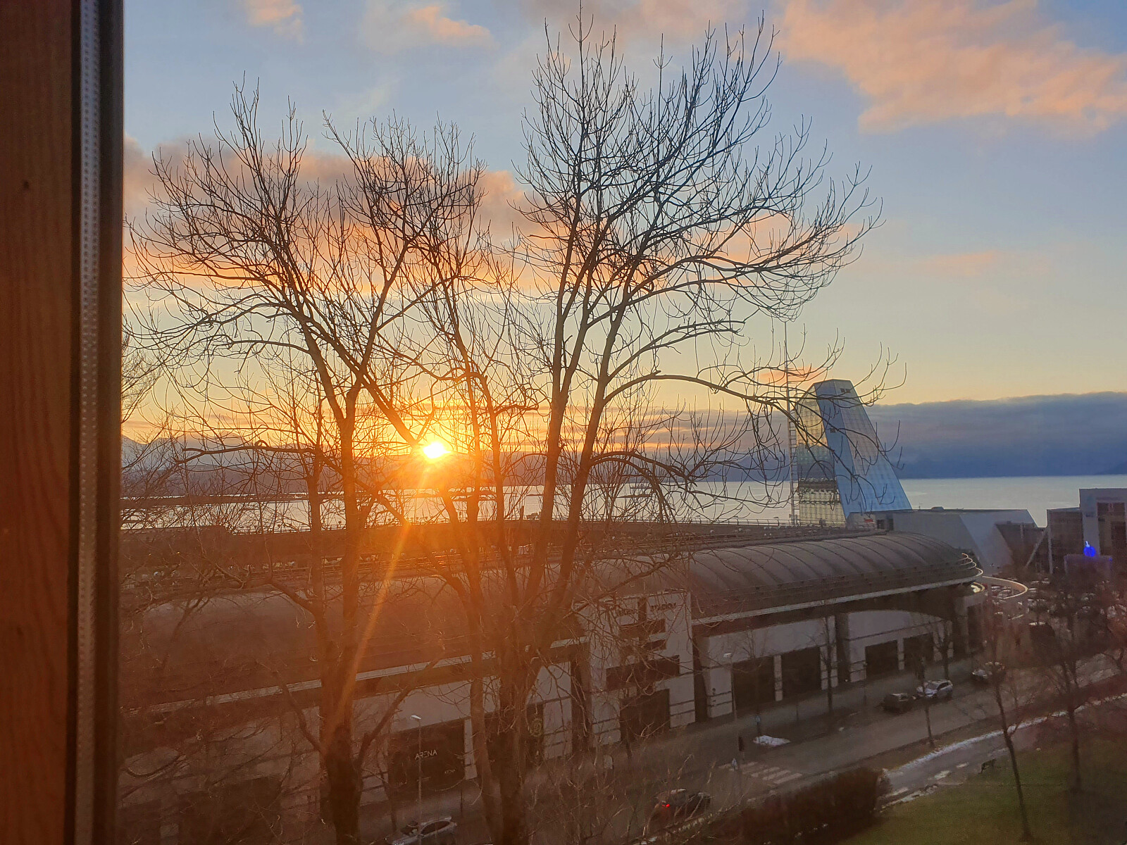 Solnedgang fra kontorvinduet