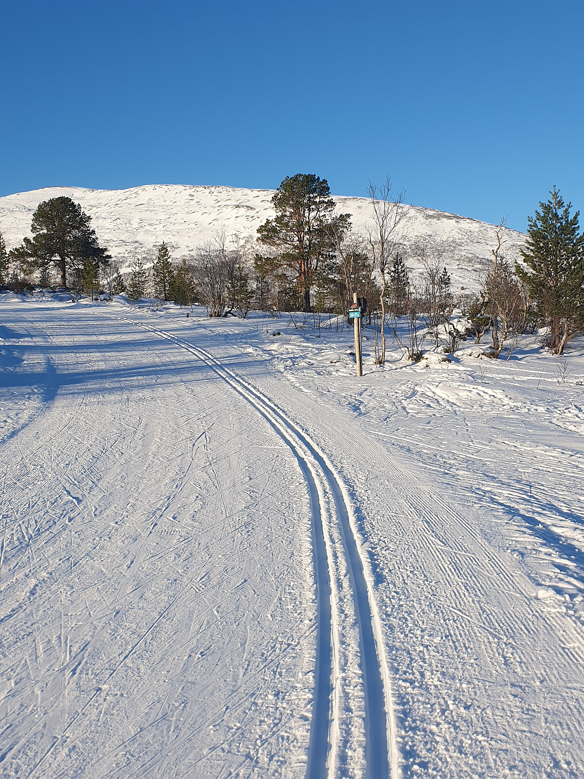 Minus 14 på parkeringen, men varmere oppe på "Haugan ". Flott blå-extra føre.