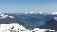 Vid utsikt i alle retninger, men ekstra flott å være så tett inntil det imponerende Trolla-massivet. Kjørte samme veg ned som opp (øst for nordtoppen). En fantastisk nedkjøring, med mange bratte og innbydende heng. Faktisk artig kjøring ned skogen også. Seks og en halv time på tur, pluss 100 km bilkjøring hver vei.
