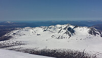 På nedturen ble det en avstikker til nordøst-toppen. Bratt ned på breen, og fin kjøring (litt skorpe i skyggen) på flanken ut til den sjelden besøkte toppen (for spesielt interesserte..). Nesten en time på denne t/r.