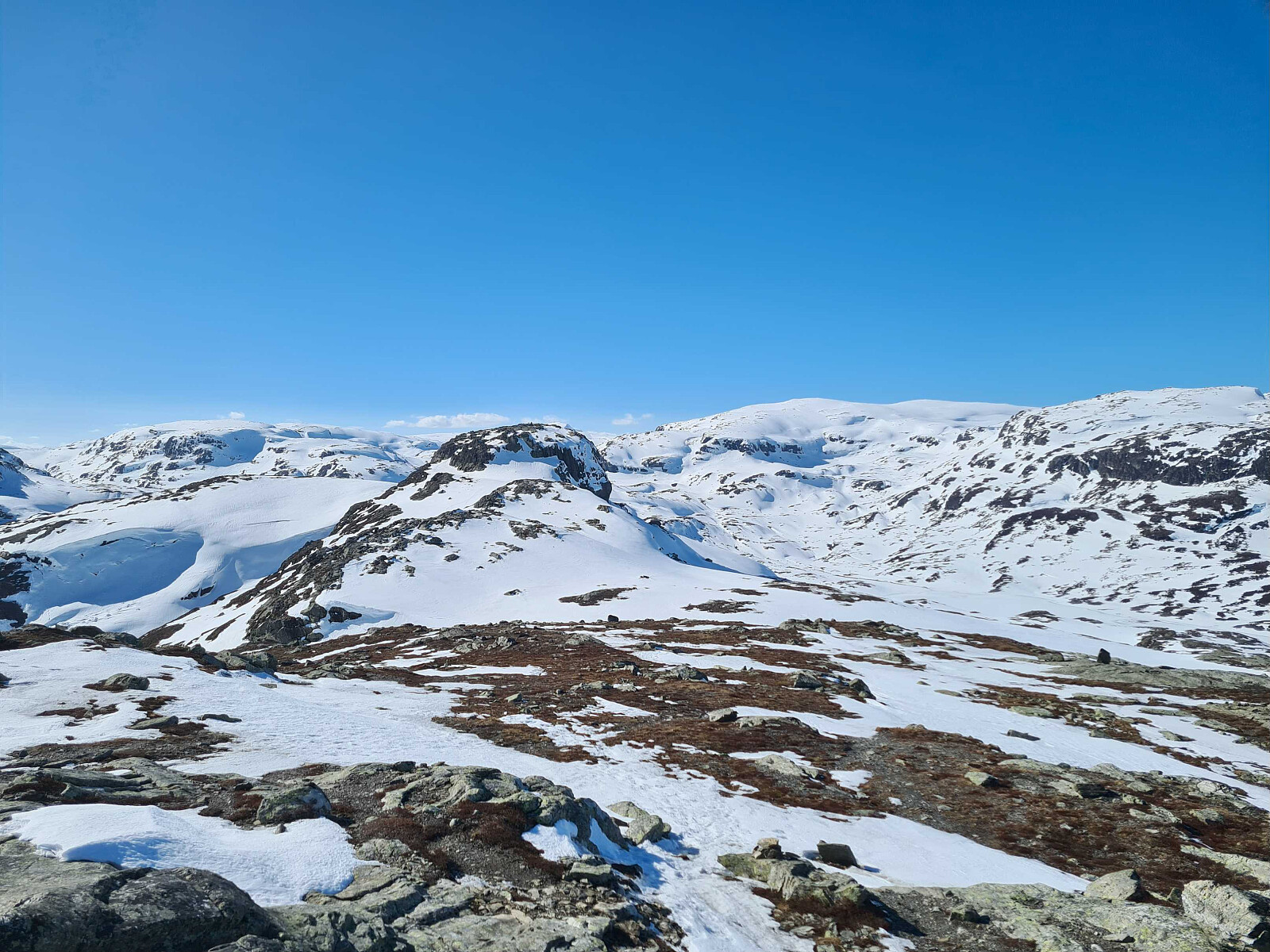 Det er lite snø i fjellet i år, men her så det greit ut.