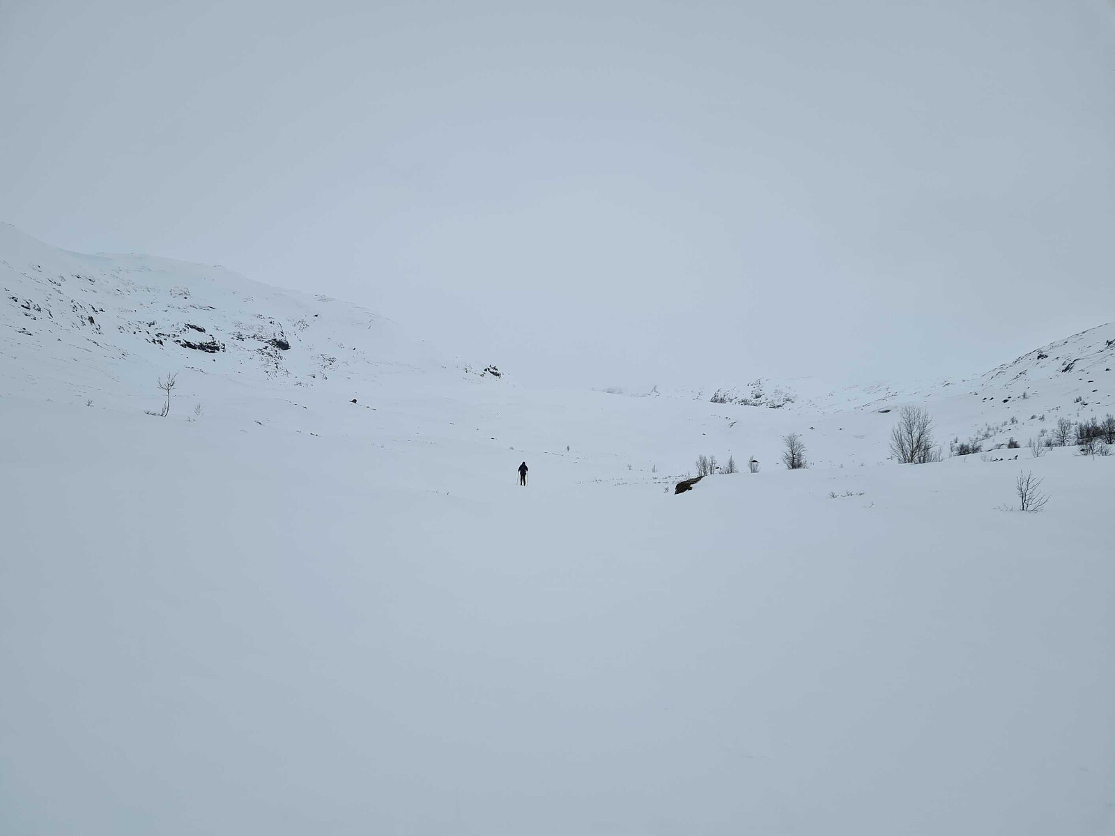 Turen startet med sur og iskald vind, lavt skydekke, gråvær og flatt lys.