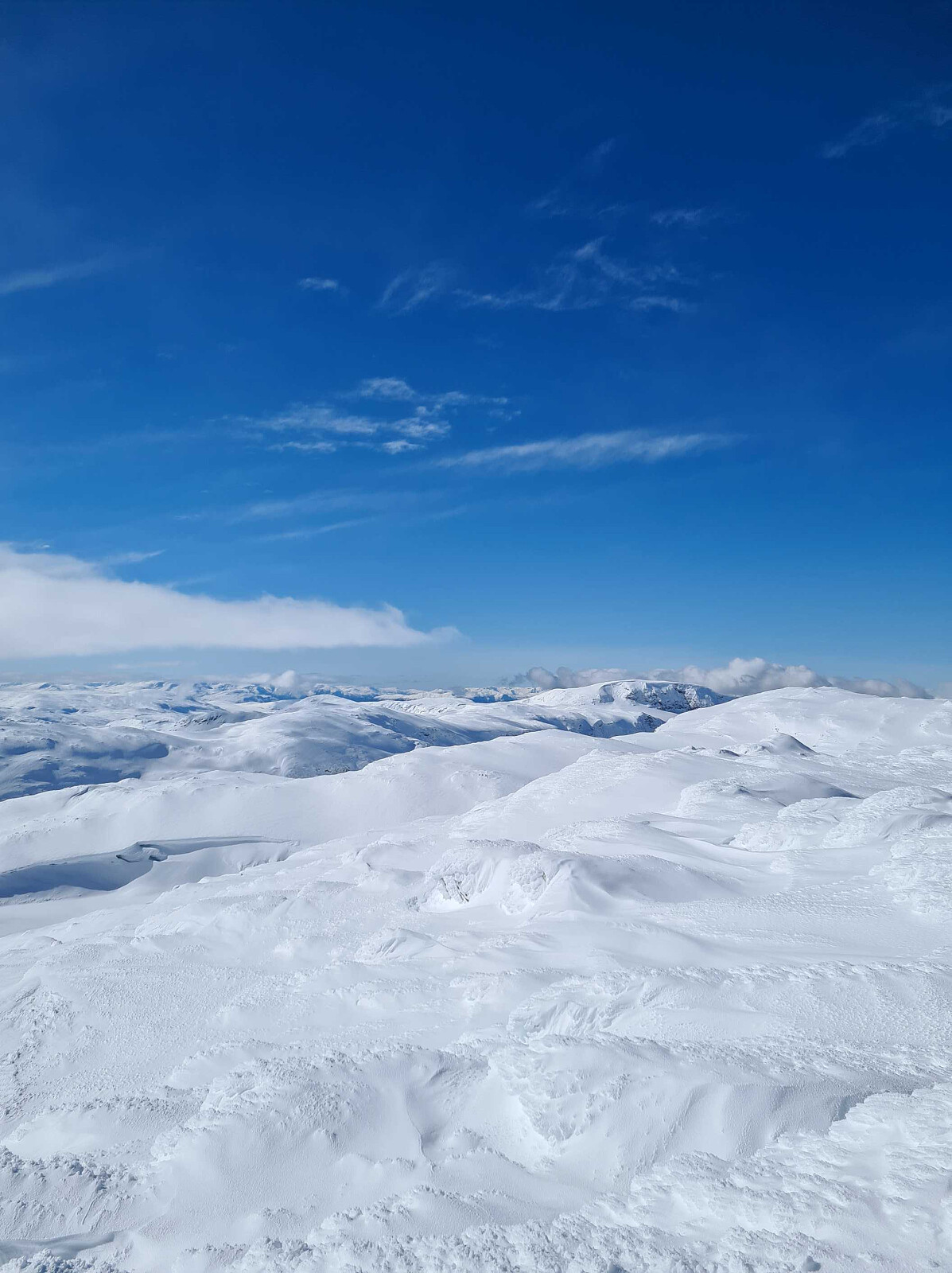 Etter hvert kom sola og det ble en fin stund på toppen med nesten vindstille og nydelig utsikt til alle kanter!