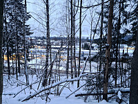 Jogget videre på stien ned til Sundbyveien og videre nordover på Skiskogveien. Her ble det ca. 1.8 km på veg. I enden av veien på Skiskogen fulgte jeg en opptråkket sti et stykke, så bar det over et hogstfelt uten spor i snøen til jeg kom inn på en sti igjen. Det var ikke mange meterne å gå fra stien opp til Skiåsen. Ingen utsikt her heller.