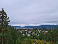 Begrenset utsikt fra tårnet, men man kunne se nedover mot Drammen og man kunne skimte Fiskumvannet.