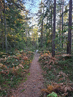 Dette angret vi ikke på. Fint terreng. Det er flott å gå langs slike rygger! Furuskog. Fin utsikt. Lav og tyttebær. Gode stier.