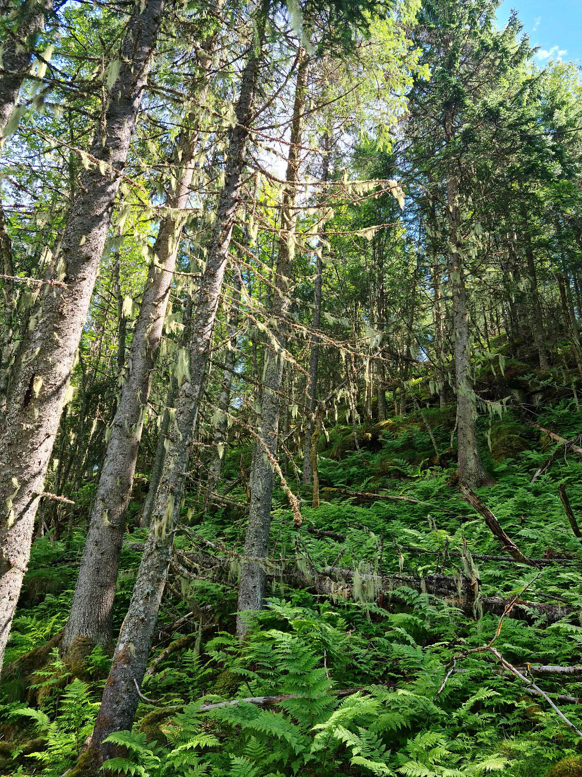 Gåturen opp til toppen ble bushing og heldigvis fant jeg en slags sti/elgtråkk opp bratta til toppen.