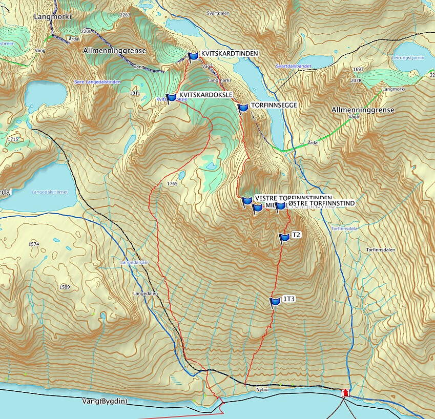 Men jeg lurer på høydemeter som er oppgitt øverst?? Hvordan kan denne runden gi 2100 høydemeter? Bygdin - Torfinnstindane er ca 1070 hm, og hvordan får du 1000 hm til? En kjapp regning på kartet gir meg 15-1600 hm...