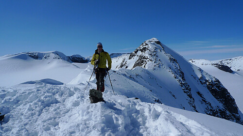 Etter at vi hadde nytt synet og fotografert en god stund fortsatte vi østover ryggen til sekundærtoppen med PF bare 10 m.