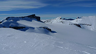 Vi kunne fortsatt ned i skaret mellom Ø1 og Ø2 og tatt Ø2 fra østsiden, men valgte å gå tilbake samme vei over toppen på Nørdre til bandet og skiene mot neste turmål
