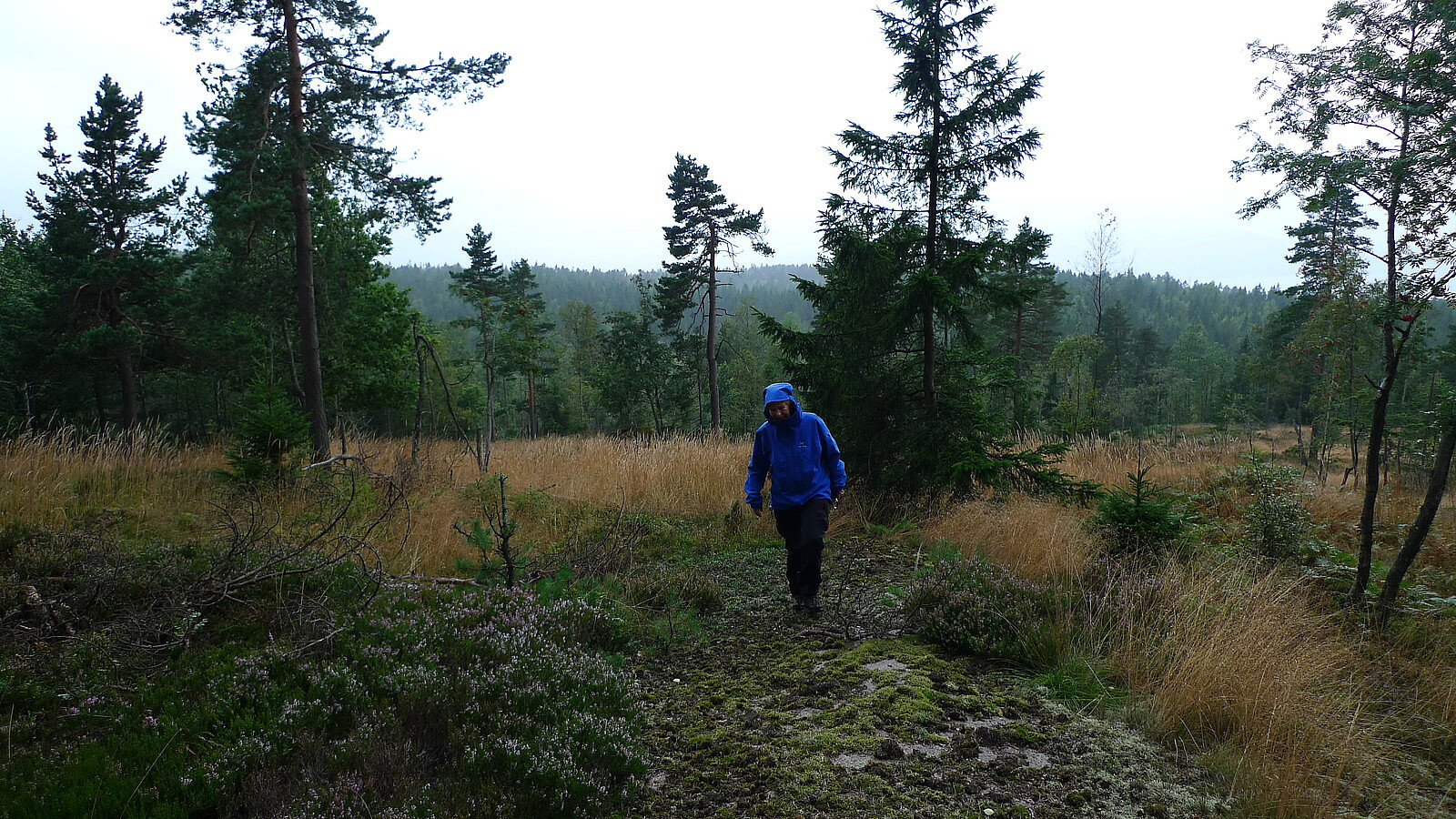 Astrid og jeg har tidligere syslet med planer om turen til Villingstadåsen som er den høyeste åsen i Røyken, men har aldri funnet frem til riktig utgangspunkt for turen. Vi har to ganger tidligere surret omkring på småveiene i Røyken over og under hovedveiene uten å finne frem til Liverud-området. Idag hadde vi bedre tid og nådde omsider frem til Liverud der vi parkerte på en stor plass ved et brannskadet hus. Turstart kl 10 på 160 moh. Fulgte sti/gammel traktorvei mellom jordene til Jaksland og videre innover Jakslandsvegen ca. 2 km. Dette er en flott skogsvei som er sperret med bom. Egner seg fint for sykling. Fulgte forøvrig GPS-sporet fra 19topper (Tor-Arne Paulsen) også idag. Det er endel skilting mot andre åser langs veien, men Villingstadåsen nevnes ingen steder! Da vi var ca 450 m fra toppen i luftlinje begynte vi å se etter en sti mot toppen uten å finne dette. Vi valgte derfor å fortsette på skogsveien til vi kom til en myr der stien fortsatte i desidert feil retning i forhold til vårt mål, fortsatt uten å finne tegn til sti mot toppen. Da ble det å krongle seg frem skritt for skritt gjennom hogstområder med råtne greiner og meterhøyt gress og bregneskog. I tillegg begynte det å regne. Men vi kom oss da omsider opp på "toppen" som er en fjellknaus med en bolt og noen gamle jernbeslag på GPS 6620825 579235. Oppe etter vel 1 time kl 1110. Ganske fint område, men ingen utsikt av betydning under dagens forhold. Heller ingen synlige stier på toppen. Dette er tydeligvis en lite besøkt ås. Vi valgte å gå i en mer direkte rute tilbake til skogsveien, og dette var noe greiere. Tilbake ved bilen kl 12.10. Turdata: 7.6 km, 2 timers gangtid, 280 hm. I morgen går turen vestover, og bra er det ....